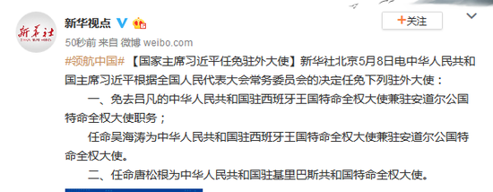 新华社北京5月8日电中华人民共和国主席习近平根据全国人民代表大会常务委员会的决定任免下列驻外大使:
